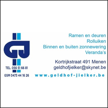IMMO DEJAEGHER, TONISSTEINER, CAFÉ DE WITTE ZWAAN, FEESTZAAL CYCLOON, BEYENS BILLIET UITVAART GELUWE, BUROPA GULLEGEM, PARTY CONCEPTS REKKEM, SLAGERIJ JOSUE DELEU MENEN,